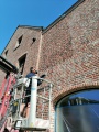 | Verwerking: | - De behandeling gebeurt door het bevloeien van de ondergrond onder lage druk, zodat geen verneveling of verstuiving van het product plaatsvindt. Dit gebeurt met een rugsproeier of een hiervoor ontworpen elektrische pomp die ervoor zorgt dat het product met constante druk over het oppervlak vloeit. - De behandeling gebeurt van onder naar boven met horizontale heen- en weergaande bewegingen, zodat een afvloeien van ongeveer 20 cm verkregen wordt. - Er worden twee behandelingen nat in nat uitgevoerd. - Als het product terechtkomt op arduin, blauwe hardsteen, glas, of andere weinig poreuze of niet poreuze materialen, dient het product opengeveegd te worden over het oppervlak, alvorens het opgedroogd is, zodat een gelijkmatige verdeling bekomen wordt. Hierna zal, na droging, geen vlekvorming optreden. |
