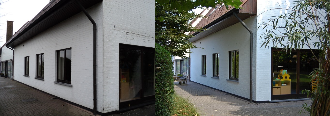 Na het uitgebreid advies die we de aannemer hier geboden hebben, werd er volledig voor de Rewah-producten gekozen, met name de Demossal en Tensiocoat. Schildersbedrijf De Companie uit Kortrijk zorgde voor een piekfijn resultaat.